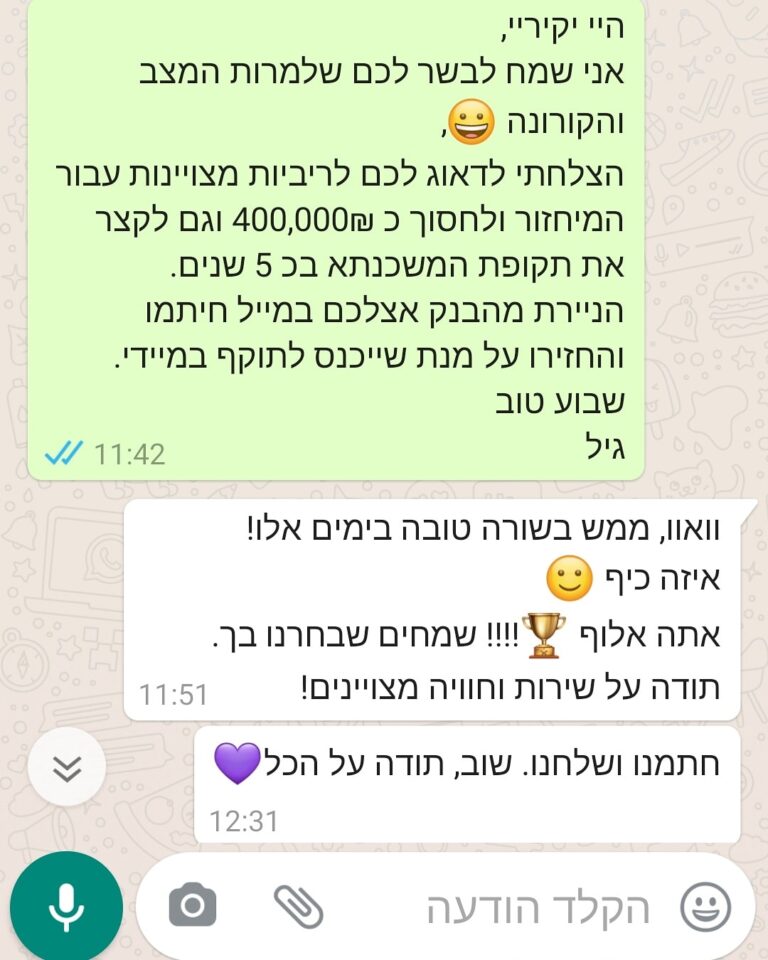 בעזרת כמה פעולות חכמות מחזרנו את הההלוואה וחסכנו כ-350,000 ש"ח בהחזרים שלה.